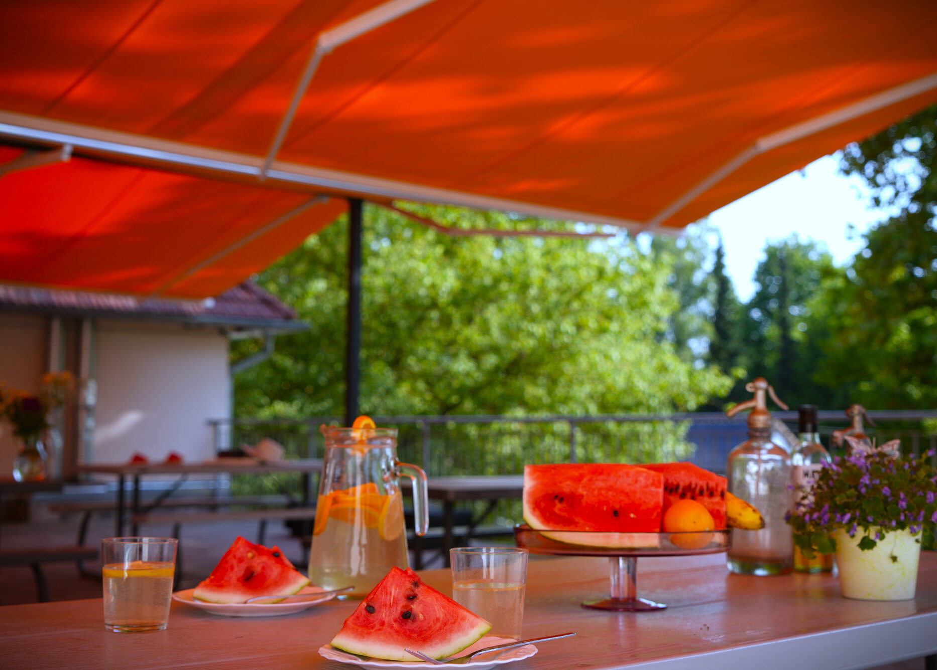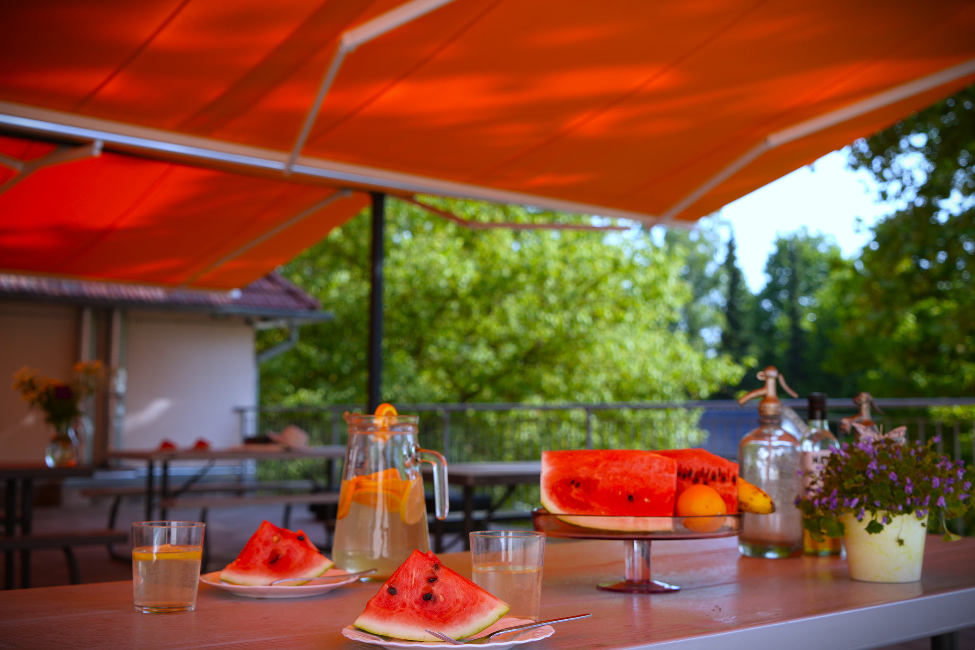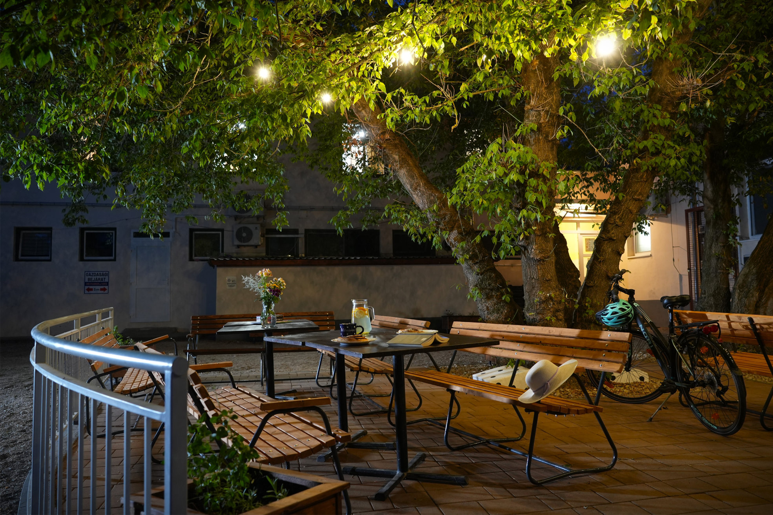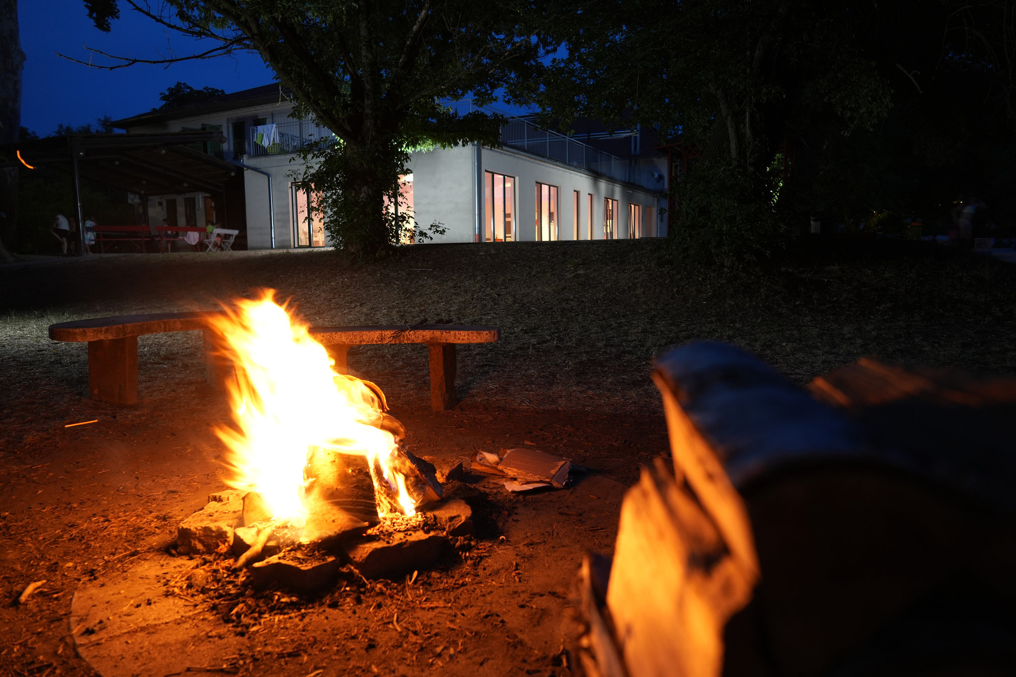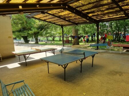 Az üdülő zárt, jól átlátható udvarral rendelkezik, amely biztonságos környezetet biztosít a gyerekek számára. A szabadtéri programokhoz kialakított tábortűzrakó hely és közösségi tér áll rendelkezésre. A közel 200 m²-es nagyterem lehetőséget ad csoportfoglalkozások, tréningek, sport- vagy kézműves programok megtartására, illetve esős idő esetén fedett alternatívát biztosít. A hozzá kapcsolódó nagy terasz további, könnyen felügyelhető közösségi térként használható.
